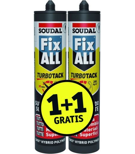 SOUDAL ADESIVO DI MONTAGGIO ''FIXALL TURBOTACK 1+1 OMAGGIO '' ml. 290 -Bianco