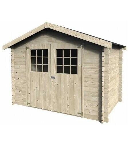 CASETTA DI LEGNO FLODOVA Casetta da giardino in legno Flodova. Casetta in legno facile da montare e perfetto per salvaguardare gli utensili all'estero. Casetta in legno da giardino blockhouse 3x2 m con doghe di 28 mm di spessore ideale per creare uno spazio in giardino ideale come falegnameria, zona artigianale o di riposo. Si tratta di una casetta prefabbricata in legno d'abete nordico naturale non trattato costruita con doppia porta finestrata di 168 x 179 cm con chiusura di chiavistello, tetto in panelli e rivestito con guaina bitumata nera. Il pavimento non incluso. Le dimensioni esterne di questa casetta in legno sono 317 x 213 cm e la superficie interna di 272 x 172 cm. Ha una sporgenza il tetto frontale di 23 cm. Sua altezza minima di 182 cm e la massima di 232 cm, essendo sua superficie utile di 4.70 m² e la superficie totale di 6.75 m². Scheda tecnica: Materiale: Legno grezzo Struttura: Ad incastro - Sistema Blockhouse Spessore: 28 mm Dimensione esterne: 317 x 213 cm ...