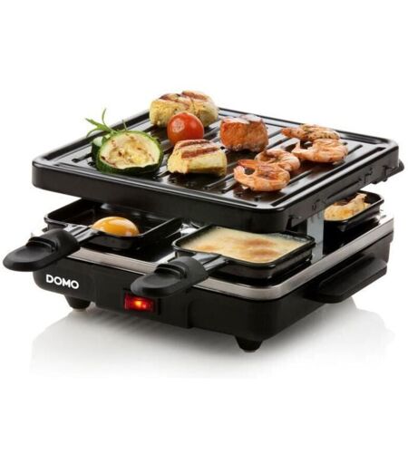 Domo - Just us DO9147G Raclette Funzione grill, Rivestimento antiaderente, Spia luminosa, 4 vaschette Nero