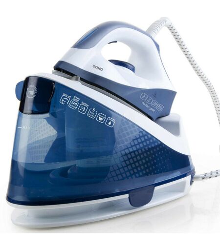 Domo DO7109S ferro generatore di vapore con potente pompa vapore integrata. Punta di precisione molto utile per la stiratura di colletti e bottoni. Riscaldamento ultra rapido: pronto all'uso quasi immediatamente. Pannello comandi con spie luminose: eco - on/off - pulizia. Sistema anticalcare con pulizia automatica. Tipo di prodotto: generatore di vapore. Ferro professionale: no. Produzione vapore (g/min): 120. Pressione (bar): 5. Termostato regolabile: Sì. Potenza centrale (W): 2200. Capacità del serbatoio (L): 2. Vantaggi: 2 livelli di vapore (Eco - Max). Colore blu. Colore secondario: bianco. Premendo: Sì. Produzione vapore per la funzione di pressatura (g/min): 240. Cottura a vapore verticale: Sì. Antiscala: Sì. Tipo di suola: Ceramica. Stoccaggio del cavo elettrico: Sì. Altro/i: Manopola della temperatura regolabile con spia, Puntale di precisione. Spegnimento automatico: Sì. Interruttore centrale di messa in servizio: Sì. Accessorio/i inclusi: Nessuno. ...