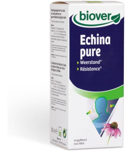 Complément alimentaire à utiliser dans le cadre d'une alimentation variée, équilibrée et d'un mode de vie sain.L’echinacea soutient la résistance et procure à l’organisme une protection naturelle. Une cure préventive avant l’hiver constitue une assurance naturelle contre les petites incommodités de l’hiver.Complément alimentaire à base de plantes fraîches de culture biologique contrôlée. Soutient la résistance.Composition:Echinacea purpurea extrait hydroalcoolique 75% (alcool*, échinacée* (partie aérienne fleurie) eau) ; Echinacea augustifolia extrait hydroalcoolique 25% (alcool*, échinacée* (racine ), eau). (*culture biologique)Conseil d'utilisation:Adultes : 3 x 25 gouttes par jour.Enfants 3-6 ans : 3 x 5 à 10 gouttes par jour.Enfants 6-12 ans : 3 x 10 à 15 gouttes par jour.A prendre avec un peu d’eau ou de jus de fruits. Bien secouer avant l’emploi. Conserver au frais après ouverture.Précautions d'emploi:Tenir hors de portée des jeunes enfants. Conserver au frais et au sec. Poids net:100 mlFabricant:BioverVenecoweg 26B-9810 NazarethBelgium ...
