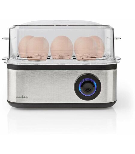 Nedis Cuociuova, in Acciaio Inox per fino a 8 Uova, Lavabile in Lavastoviglie, con 3 Gradi di Durezza, Vassoio di bollitura per uova in camicia e Timer