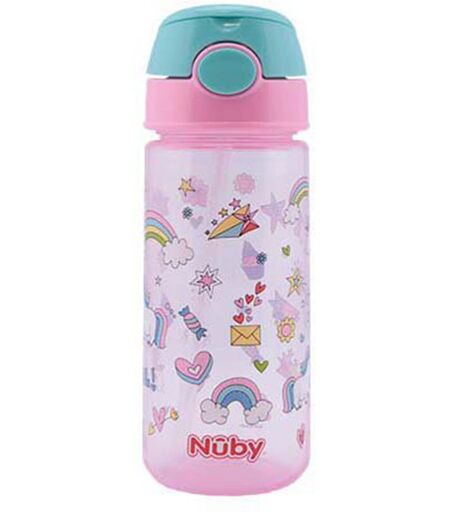 Nûby Mug con bottone e cannuccia morbida 3 anni+ #rosa 540 ml