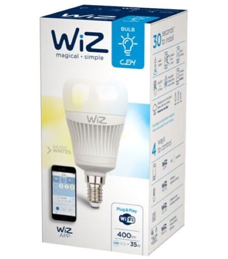 WIZ - lampadina led Smart Candle WiFi luce bianca con attacco E14. Dimmerabile, 64.000 tonalita' di bianco. Funziona con Amazon Alexa e Google Home