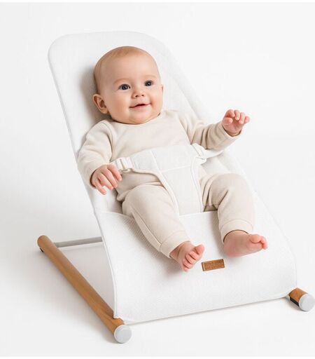 Childhome - Seggiolino a dondolo per neonati Sdraietta per bambini, rete bianca, max. 9 kg, acciaio faggio, LxLxH 46x74x56 cm