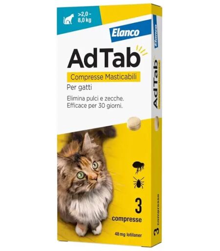 Elanco Italia Spa Adtab Per Gatti Da 2 A 8kg 3 Compresse Masticabili 48mg