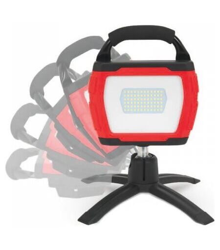 Faro LED portatile da 36W con luminosità regolabile: 3000 lm (alta), 1500 lm (media), 750 lm (bassa) Base orientabile a 360° e struttura robusta in alluminio, policarbonato e gomma Batteria al litio 7,4V 4400 mAh con autonomia fino a 5 ore e ricarica in circa 4,5 ore Grado di protezione IP65 e resistenza IK07 per uso in esterni e ambienti gravosi Luce bianco freddo 6500K, CRI >80, certificazioni CE e RoHS ...