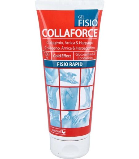 Collaforce Fisio - Descrizione Gel effetto freddo ad assorbimento rapido, arricchito con collagene, arnica, artiglio deldiavolo, glucosammina, condroitina, miele e pappa reale, con azione idratante eprotettiva dell'epidermide. Contiene anche olio di eucalipto, canfora e mentolo, noti peril loro pot… ...