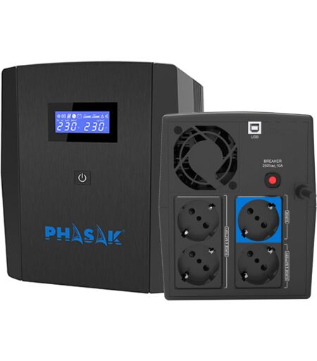 PHASAK Ups interattivo Sirius 1560 va Modello ph 7315, protezione per apparecchiature elettroniche, regolazione automatica della tensione de,
