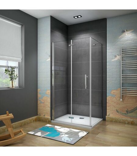 EXIT TOYS Box Doccia Porta Pieghevole Più Parete Laterale Fissa Vetro 6 mm Temperato Anticalcare Telaio e Barra Stabilizzatrice Cromato Lucido 100x90x195 cm