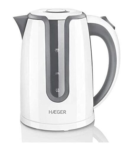 HAEGER HOT GREY - Bollitore elettrico con potenza di 2200W, capacità di 1,7L - base girevole a 360°, elemento riscaldante in acciaio inox a scomparsa, protezione contro l'ebollizione, spegnimento auto ...