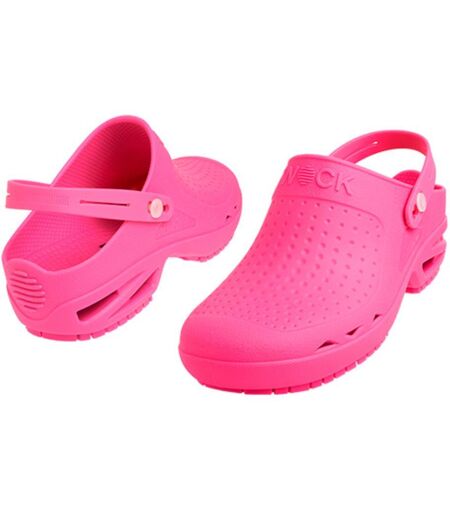 WOCK - CLOG 09 - FUCSIA/BIANCO - Descrizione Zoccolo professionale interamente realizzato in materiali polimerici. Presenta i seguenti componenti: - Plantare removibile con fori di ventilazione; - Inserto antistatico; - Cinturino regolabile e ribaltabile; - Fori di ventilazione laterali Ideale per … ...