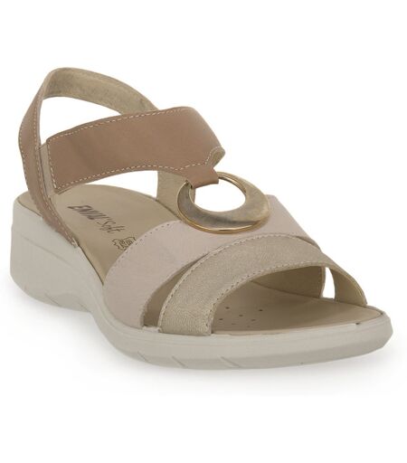 sandali confort enval soft realizzati in pelle con doppio elastico laterale. fodera in pelle e sottopiede morbido in pelle fondo shock absorber in gomma con zeppa alta 4 cm. made in italy. colore: beige corda. ...