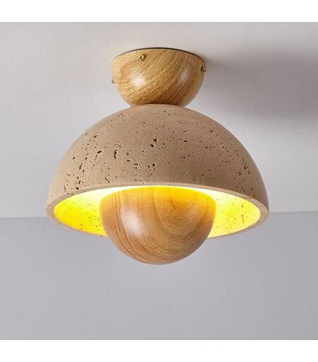 WOTTES Plafoniera Soffitto Vintage Lampada da Soffitto Art D'eco Travertino Giallo e Legno Ø23CM per Soggiorno Cucina Bagno - Colore Legno