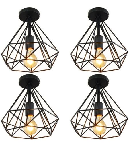 WOTTES - 4 Pezzi Plafoniera Vintage Industriale Lampada da Soffitto Diamante Illuminazione Nero in Metallo per Corridoio Portico Cucina ø 25 cm
