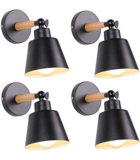 WOTTES 4 Pezzi Lampada da Parete Moderno Applique da Parete Interno Lampada a Muro in Metallo e Legno Nero Ø12cm