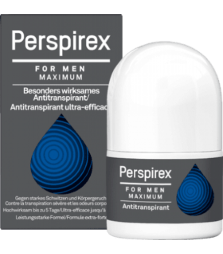 Perspirex - FOR MEN MAXIMUM - Descrizione Antitraspirante con una formula extra - forte, adatto alle situazioni in cui la sudorazione interferisce con le attività quotidiane. Controlla i cattivi odori e offre una protezione altamente efficace contro la sudorazione fino a 5 giorni. L'effetto a lunga… ...