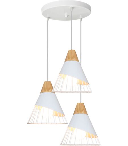 WOTTES Lampada a Sospensione Ferro Battuto Creativo Legno Massello Badminton 3 Luci Lampadario Moderno Soggiorno Barra Cucina Lampade Bianco