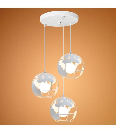 WOTTES Personalità Creativa Lampada a Sospensione globo Luci Camera da Letto Soggiorno Caffetteria Metallo Industriale Retrò 3 Lampada (Bianco)