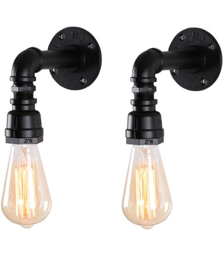 WOTTES 2Pcs E27 Retrò Applique Parete Industriale Lampada Parete Creativo Vintage Tubo Dell'acqua Lampada Muro Ristorante Cucina Caffè Nero