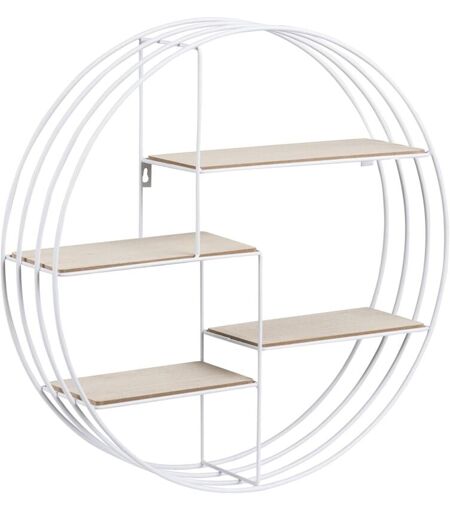 HELLIN AC Design Furniture Mensola da parete rotonda Nadine in metallo bianca con 4 ripiani, decorazione murale piccola, mensola galleggiante bianca,