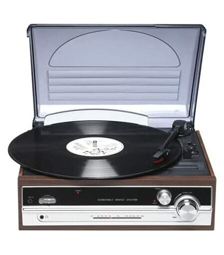 TOOLLAND Giradischi Denver VPR-190 con radio fm. Altoparlanti integrati. Finitura in legno. Stilo in ceramica.