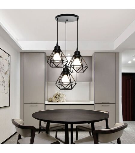 AXHUP 3 Luci Industriale Vintage Lampada a Sospensione Paralume Diamante in Ferro Lampadario per Soggiorno Sala da Pranzo Camera da Letto Nero