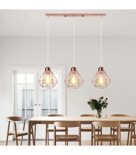 AXHUP 3 Luci E27 Lampada a Sospensione Industriale Paralume Diamante in Ferro Lampadario per Sala da Pranzo Camera da Letto Oro Rosa