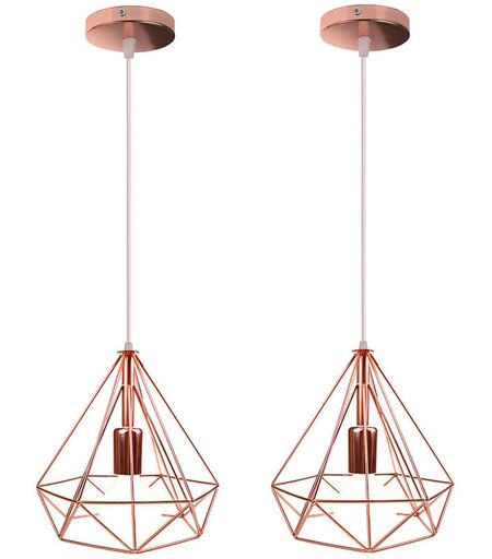 AXHUP 2X Lampada a Sospensione, Plafoniera in Industriale Stile con Ø25cm Gabbia di Diamante, Illuminazione con E27 per Soggiorno Cucina di Casa Ristorante