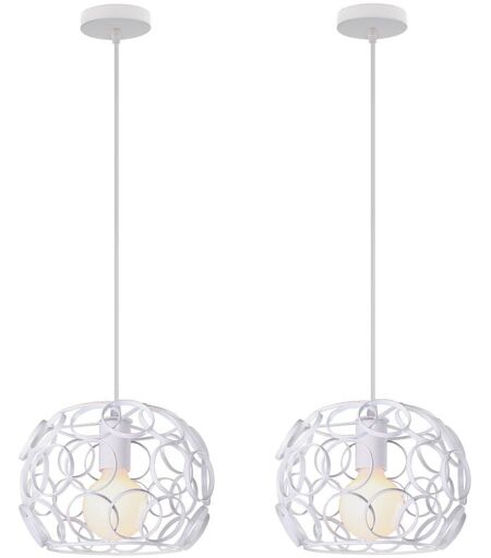 AXHUP 2X Lampada a Sospensione, Lampada da Soffitto con Ø24cm Gabbia Rotonda, in Metallo con Supporto E27 per Soggiorno Cucina Camera da Letto Loft (Bianco)
