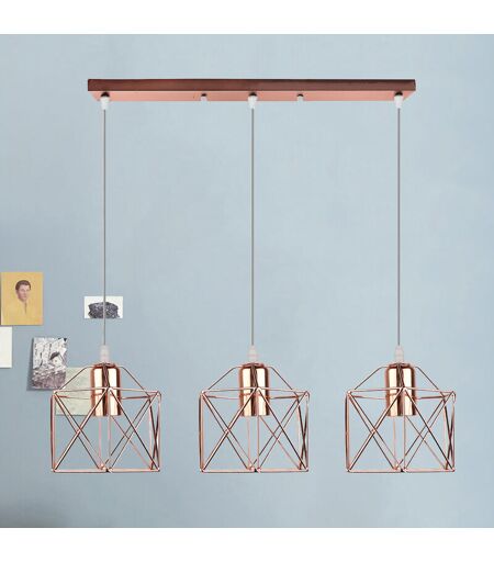 AXHUP Lampada a Sospensione, 3 Luci Plafoniera con Ø16cm Mini Piazza Gabbia, E27 Attacco, Illuminazione per Soggiorno Sala da Pranzo Camera da Letto (Oro