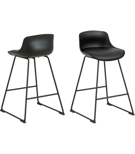 EBUY24 AC Design Furniture Tille Sgabello imbottito in ecopelle nera con gambe in metallo nero e poggiapiedi, facile da pulire, ideale per sala da pranzo,