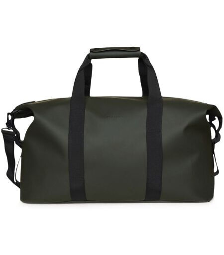 borsa da viaggio in tessuto impermeabile di rains con dettagli rigidi e tracolla tipici del marchio. la hilo weekend bag e realizzata in tessuto pu impermeabile progettato per essere robusto duraturo e piacevole al tatto. chiusura con cerniera rive ...