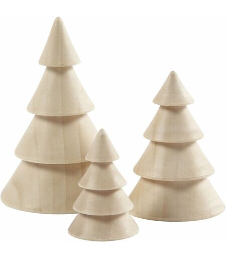 CREOTIME Creativ 100263 Alberi di Natale in legno, h: 5+7,5+10 cm, d: 3,5+5,4+6,7 cm, legno imperatrice, 3pz