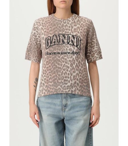 Ganni Maglia in lana vergine animalier con logo Fantasia Taglia XS