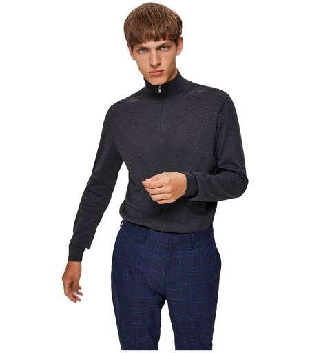 Selected Maglione Con Zip Completo Berg Antracit / Detail Melange S