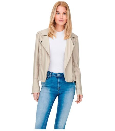 Only Giacca Di Pelle Gemma Faux Biker Silver Lining 38