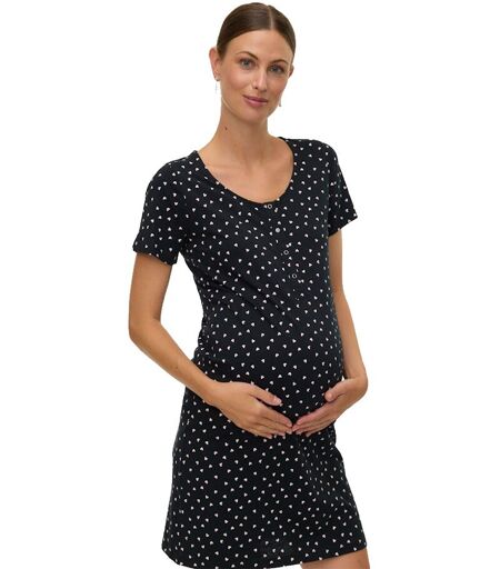 Mamalicious Vestito Corto A Maniche Corte Mira Maternity Black /Aop Chalk Pink Hearts S