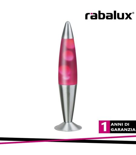 Lampada decorativa .La lampada lava che fornisce un illuminazione d atmosfera di colore arancione e viola dotata di 1 sorgente luminosa da 25W (inclusa nella confezione), un cavo di alimentazione e un interruttore. Ha una lampada in metallo color argento, un paralume in vetro, un altezza di 42 cm e un diametro di 11 cm. La lampada decorativa pu essere utilizzata con sorgente luminosa G45 tradizionale o alogena fino a 25W, con attacco E14. CARATTERISTICHE DEL PRODOTTO :categoria di prodotto=Illuminazione interna :Stile=Standard :Camera=soggiorno, camera da letto :Specifiche della sorgente luminosa=25W:Tecnologia LED=No:Protezione IP=IP20:Colore della lampada=trasparente:Materiale della lampada=metallo:Colore del paralume=rosa:Materiale del paralume=vetro:Durata della sorgente luminosa (h)=1000:Sorgente luminosa inclusa=sì:Classe energetica sorgente luminosa=G:Garanzia (anni)=1:Numero di presa=1:PRESA=E14:Specifiche dell'apparecchio di illuminazione=E14 G45 1x MAX ...