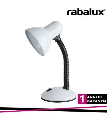 Lampada da tavolo Dylan .Una lampada da tavolo dallo stile sempre alla moda con 1 attacco. Un apparecchio bianco largo 23 cm, alto 34,5 cm, realizzato in plastica e paralume regolabile. L apparecchio pu essere utilizzato anche con una sorgente luminosa a risparmio energetico fino a 40W, con attacco E27. CARATTERISTICHE DEL PRODOTTO :Categoria di prodotto=Illuminazione interna :Tipo=Lampade da tavolo :Stile=Standard :Camera=stanza di lavoro, stanza dei bambini :Protezione IP=IP20 :Colore della lampada=bianca :Materiale della lampada=metallo :Colore del paralume=bianca :Materiale del paralume=metallo:Numero di presa=1:PRESA=E27:Specifiche dell'apparecchio di illuminazione=E27 1x MAX 40W:Tensione applicata=230V, 50Hz:Orizzontale (mm)=230,0:Verticale (mm)=345,0:Misura scatola unica X (cm)=14.0:Dimensione scatola unica Y (cm)=13.7:Dimensione scatola unica Z (cm)=21.9:Peso netto (kg)=0.9:Peso lordo=1.05:Tipo di interruttore=con interruttore:Classe di protezione=II ...