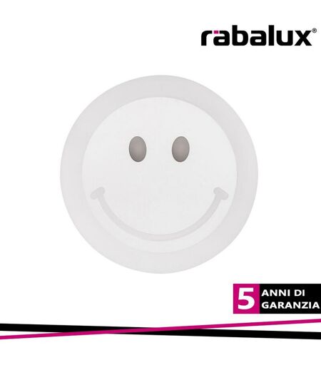 Applique per bambini .Applique per bambini decorativa a forma di smiley con lampadina LED a risparmio energetico integrata. Apparecchio da 16 cm di diametro, in metallo bianco e plastica, con funzionamento DC 5V e protezione IP20. La sorgente luminosa a LED integrata di classe energetica A+ ha una potenza di 6W, un flusso luminoso di 360 lumen e fornisce una luce bianca calda di 3000 Kelvin. La lampadina non pu essere sostituita nell apparecchio. Viene fornito con una garanzia di 5 anni. CARATTERISTICHE DEL PRODOTTO :categoria di prodotto=Illuminazione interna :Stile=Moderno:Camera=La stanza dei bambini:Temperatura colore=bianco caldo:Flusso luminoso della sorgente luminosa (lm)=360:Specifiche della sorgente luminosa=6W:Tecnologia LED=sì:Protezione IP=IP20:Colore della lampada=bianca:Materiale della lampada=metallo:Materiale del paralume=plastica:Durata della sorgente luminosa (h)=30000:Classe energetica sorgente luminosa=G:Garanzia (anni)=5:Consumo energetico ponderato ...