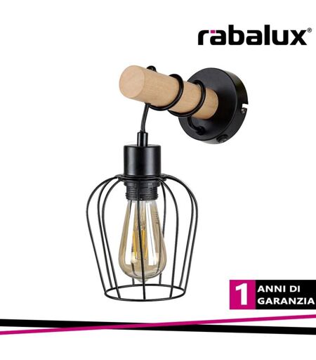 RABALUX Fabian, Indoor Metal-Wood Wall Lamp, E27 1x Max 40w, Matt Bl