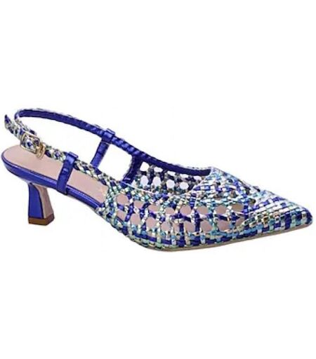 Decollete mignon morbido intreccio traforo colore multicolor blu/celeste/argento/oro/verde metal), cinturino alla caviglia con doppia fibbia, rivestimento interno in vegano, sottopiede morbido in pelle, tacco rivestito 55mm, suola gomma antiscivolo. ...