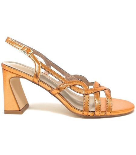 Sandali donna in pelle arancio francesco milano. Sottopiede in pelle con ciscinetto, tacco largo comodo 7,5 cm. ...