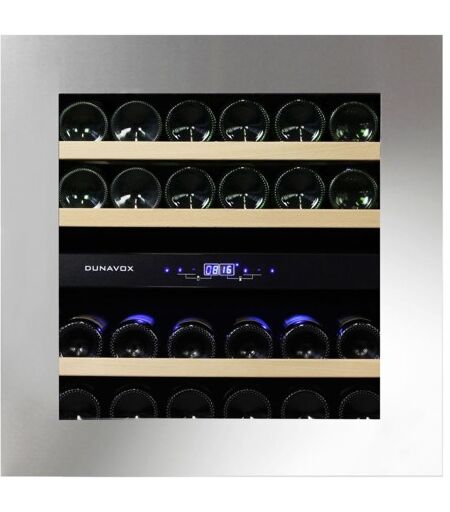 Dunavox Glance 25, cantinetta per vino, acciaio inox, DAVG-25.63DSS.TODunavox Glance 25, cantinetta vino in acciaio inox DAVG-25.63DSS.TO, capacità: 25 bottiglie (0,75l Bordeaux), design interno: ripiani in legno e illuminazione interna a LED , cerniera porta reversibile, porta push-to-open ...