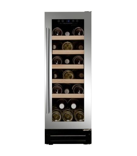 Dunavox Flow 19, cantinetta vino sottopiano, acciaio inox, DAUF-19.58SSDunavox Flow 19, cantinetta vino sottobanco in acciaio inox DAUF-19.58SS, capacità: 19 bottiglie (0,75 l Bordeaux), design interno: ripiani in legno e illuminazione interna a LED , cerniera porta reversibile ...