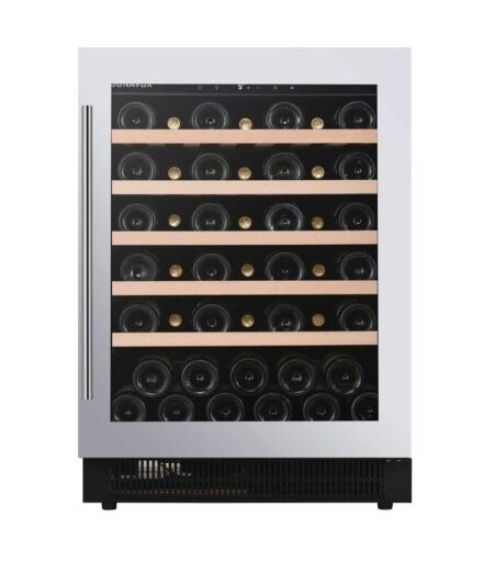 Dunavox Flow 46, cantinetta vino sottopiano, acciaio inox, DAUF-46.138SSDunavox Flow 46, cantinetta vino sottobanco in acciaio inox DAUF-46.138SS, capacità: 46 bottiglie (0,75 l Bordeaux), design interno: ripiani in legno e illuminazione interna a LED , cerniera porta reversibile ...
