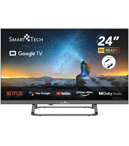Smart Tech TV LED HD 24"(60 cm) Smart TV Google 24HG01VC Caricatore per veicoli 12v fornito, HDMI, USB, Risoluzione: 1366*768.Il televisore Smart Tech 24HG01VC è un modello di smart TV di alta qualità che offre un'esperienza visiva eccezionale. Con uno schermo da 24 pollici, fornisce immagini nitide e dettagliate con risoluzione HD. Questo televisore è dotato di funzionalità intelligenti che ti consentono di accedere a un'ampia varietà di contenuti online, come app di streaming video, social network e browser Web, direttamente dal tuo televisore.Inoltre, dispone di connettività Wi-Fi integrata e porte HDMI e USB per facilitare la connessione di altri dispositivi esterni, come console per videogiochi o lettori multimediali. Con il suo design elegante e moderno, il televisore Smart Tech è l'opzione ideale per coloro che desiderano godersi un intrattenimento coinvolgente e avere accesso a molteplici opzioni di contenuti comodamente da casa. ...