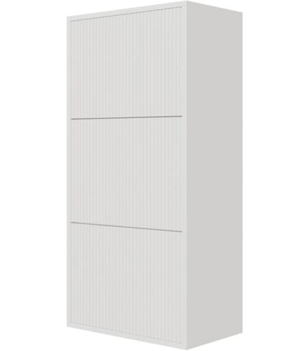 Ottimizza lo spazio per le tue scarpe con questo elegante scarpiera a muro, perfetta per una sistemazione elegante e salvaspazio delle scarpe nella tua casa. Questo armadio per scarpe offre tre ampi scomparti, in grado di contenere fino a 12 paia di scarpe, fino alla taglia 45. Con le sue ante scanalate e la finitura opaca, si inserisce armoniosamente in ogni arredamento moderno. La scarpiera viene montata direttamente sulla parete, quindi non è necessario un supporto aggiuntivo. Questo la rende la soluzione ideale per spazi più piccoli, dove è importante risparmiare spazio sul pavimento. Gli scomparti si aprono premendo la parte inferiore della porta, un'operazione funzionale e anche esteticamente piacevole. Questo armadio sospeso è realizzato con pannelli laminati in grigio taupe per la struttura e pannelli in MDF per un design robusto e durevole. Grazie alla protezione angolare in ABS, i bordi restano protetti e conferiscono al mobile una linea pulita ed elegante. Caratteristiche ...