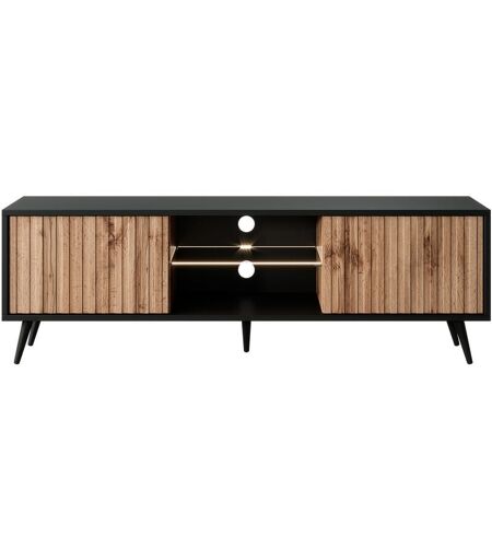 SELSEY - Bello - Mobile tv 135 cm con frontali a doghe, led, nero / rovere Wotan